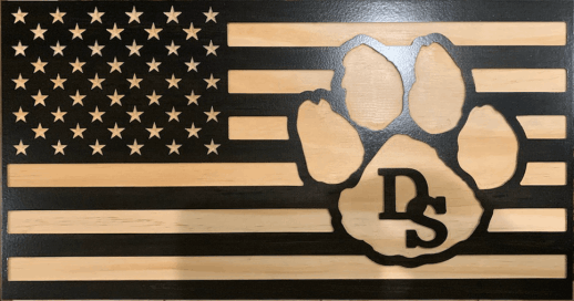 10"x19" Custom made wood flag with the DS logo. Contact us for customizations.